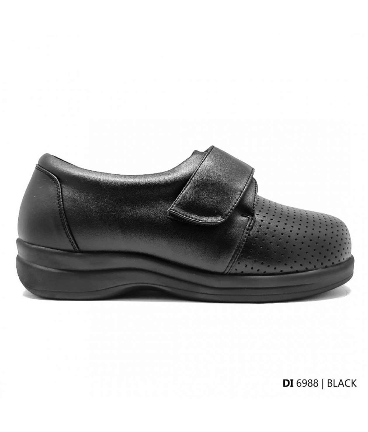 Diabetic shoes designed to provide protection and comfort for diabetic feet. These shoes are biomechanically engineered with shock absorption and even weight distribution to help prevent the formation of corns and calluses that can lead to foot ulcers. Features include a soft upper and a firm heel counter.